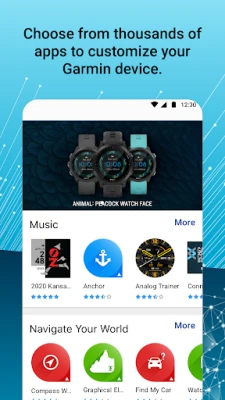 Your device with your apps — all in one place. The Connect IQ Store is where you can download free apps, such as Uber and SmartThings, for more functionality. Put music streaming services right on your watch for music on the go. Personalize your devices with widgets, data fields and even custom watch faces. Then, manage all your downloads in the store.