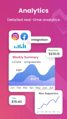 - Get real time analytics on profile views and link clicks